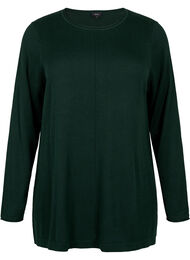 Yksinkertainen neulepusero pehmeäsä ja miellyttävästä puuvillaviskoosisekoitteesta. Neulepuserossa on pyöreä pääntie, pitkät hihat ja koristeelliset joustoneulereunat.