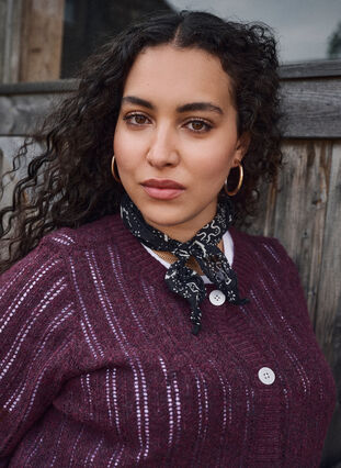 Naisten upea neuletakki kevyestä neuloksesta, jossa on 32% kierrätettyä polyesteriä. Neuletakki on suunniteltu hienovaraisella ajotuksella, joka luo ilmavan ja naisellisen ilmeen. Tyylissä on klassinen pyöreä pääntie, pitkät hihat ja helmiäissimpukkalaatat edessä, jotka tuovat eleganttia säväystä. Istuvuus on rento ribatulla helmalla ja hihansuilla, jotka antavat siistin viimeistelyn.
