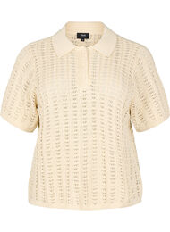 Lyhythihainen poolopusero kevyttä ja pehmeää puuvillasekoitetta, jossa on hieno, koristeellinen silmukkakuvio. Mallissa on klassinen poolokaulus, jossa on napit edessä, kapeat vaotetut reunat hihoissa ja helmassa sekä rento istuvuus.