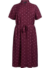 Ihana midi-pituinen paitamekko, joka on valmistettu laadukkaasta viskoosista, sisältäen 83% LIVAECO™ viskoosia ja hienovaraisen pilkkukuvion. Mekossa on lyhyet hihat, klassinen paitakaulus, kokonaisnapitus ja normaali istuvuus irrotettavalla vyötärönauhalla.