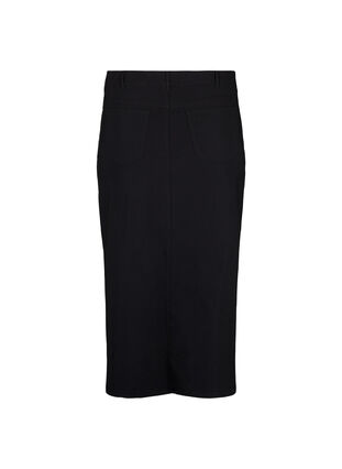 Pitkä suora hame joustavaa viskoosisekoitetta. Etuhalkio, vetoketju- ja nappikiinnitys, taskut ja vyölenkit.