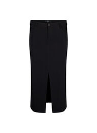 Pitkä suora hame joustavaa viskoosisekoitetta. Etuhalkio, vetoketju- ja nappikiinnitys, taskut ja vyölenkit.