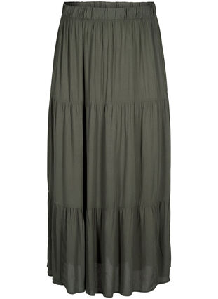 Pitkä hame, jossa on joustava vyötärö ja leikkauslinja, jossa on pieniä laskoksia, jotka antavat mukavan laskeutuvuuden ja lisää leveyttä väljään istuvuuteen. Tämä hame sisältää 100 % LENZING™ ECOVERO™ -viskoosikuituja, jotka tukevat luonnollista pehmeyttä ja laskeutuvuutta.