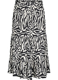 Pitkä hame kevyestä ja joustavasta materiaalista, jossa on ihana tekstuuri ja kaunis seeprakuosi. Hameessa on joustava vyötärönauha ja koristeelliset saumat, jotka luovat kerrostetun ilmeen, antaen kauniin laskeutuvuuden rennolle A-linjaiselle mallille.