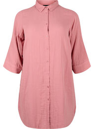 Mukava pitkä paita 100 % pehmeästä ja hengittävästä puuvillamusliinista, jossa on kevyesti rypytetty tekstuuri. Paidassa on klassinen paidankaulus, täyspitkä napitus, 3/4-pituiset hihat ja rento istuvuus sekä alareunassa pyöristetty helma.