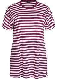 Raidallinen pitkä yöteepaita 100 % luomupuuvillaa. Teepaidassa on pyöreä pääntie, lyhyet hihat ja mukava A-linjainen malli.