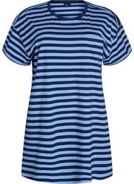 Raidallinen pitkä yöteepaita 100 % luomupuuvillaa. Teepaidassa on pyöreä pääntie, lyhyet hihat ja mukava A-linjainen malli.