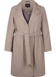 Klassinen pitkä takki, jossa on ajaton malli ja väljä solmittava vyö. Takissa on piilotettu etunappikiinnitys ja sivutaskut. Takki on valmistettu pehmeästä ja lämpimästä materiaalisekoituksesta, jossa on 20 % villaa ja 50 % kierrätettyä polyesteriä.