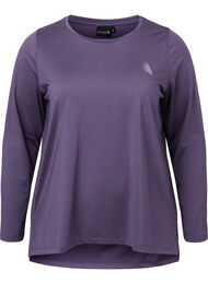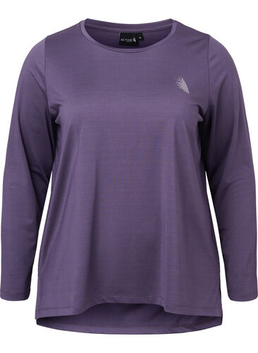 Treenipaita, jossa on pitkät hihat ja mukava istuvuus, joka takaa liikkumisen vapauden treenien aikana. Paidassa on kuvioitu kangas, ja se on valmistettu hengittävästä ja joustavasta materiaalista, jossa on hikeä siirtävä ja nopeasti kuivuva ominaisuus.
