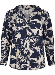 100 % viskoosista valmistettu paita, jossa on kaunis all-over-kuviointi ja normaali istuvuus Tässä paidassa on klassinen kaulus, V-pääntie, piilotettu nappilista ja pitkät hihat, joissa on leveät hihansuut ja napit.