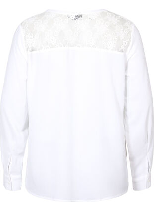 Kaunis ja yksinkertainen pusero, jonka selässä oleva tyylikäs pitsikappale tuo puseroon naisellisuutta. Puserossa on pitkät hihat hihankäänteillä ja V-pääntie, ja se on valmistettu miellyttävästä materiaalista, jossa on 55 % kierrätettyä polyesteriä.
