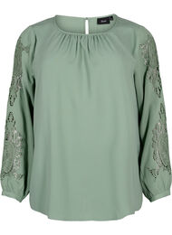 Pitkähihainen pusero virkatuilla yksityiskohdilla