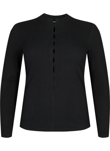 Pitkähihainen tyköistuva pusero joustavasta ribbikankaasta. Puserossa on edessä reikäkoristelu, joka luo trendikkään ja hienostuneen ilmeen.