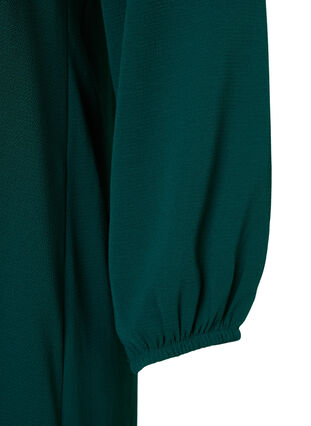 Pitkähihainen V-kaula-aukkoinen mekko.