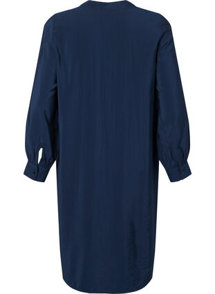 Mekko, jossa on koristeellinen rusetti pääntiessa ja pitkät hihat, joissa on hihankäänteet ja nappi. Mukavan väljä mekko on valmistettu ihanasta viskoosikankaasta.