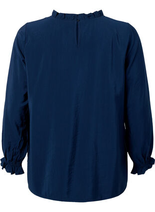 Pitkähihainen viskoosipusero röyhelöillä