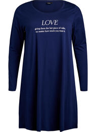 Pitkähihainen yöpaita, jossa on pyöreä pääntie ja tekstipainatus rinnassa. Yöpaidassa on väljä a-muoto, ja se on valmistettu pehmeästä 100% luomupuuvillasta.