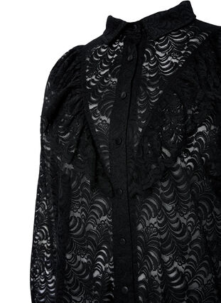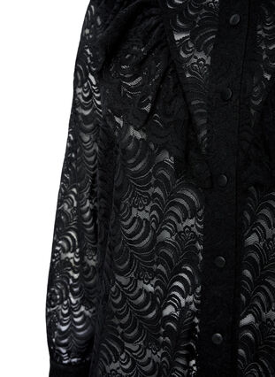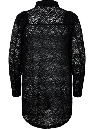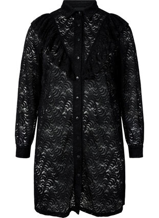 Paitamekko naisellisella röyhelöllä ja klassisella paidankauluksella. Paitamekko on valmistettu kauniista ja laadukkaasta pitsistä ja siinä on nepparikiinnitys koko pituudelta.