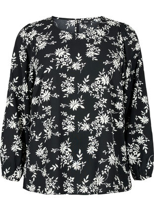 Klassinen ja väljä pusero pyöreällä pääntiellä ja pitkillä hihoilla. Rypytys olkapäillä luo naisellisen ja kevyen puhvivaikutelman.