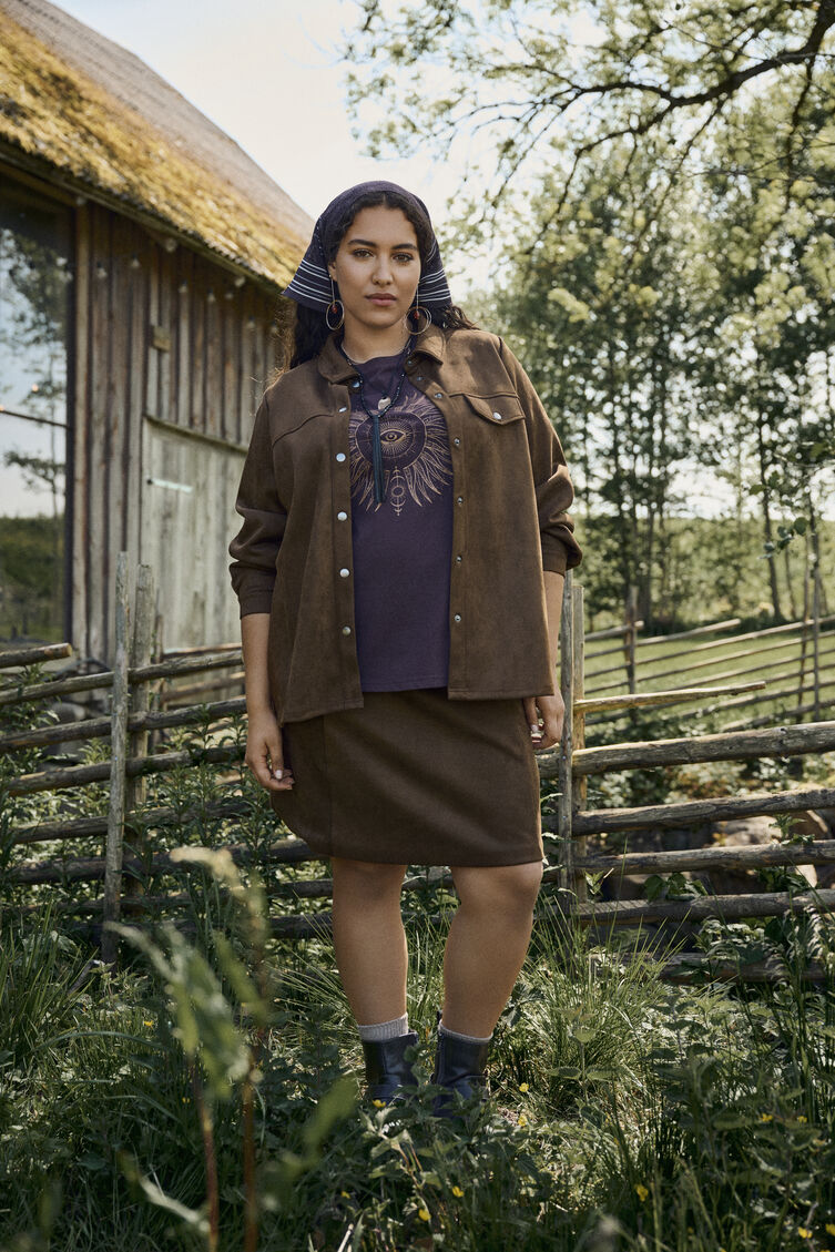 100% puuvillaa oleva T-paita pyöreällä pääntiellä, lyhyillä hihoilla ja normaalilla istuvuudella. T-paitaa on saatavilla kolmessa eri printissä: astrologiasta inspiroitunut design tähtimerkeillä, graafinen printti silmällä ja siivillä, sekä painatus, jossa on kuu ja lintu tekstillä “Moonlight Dreams.”