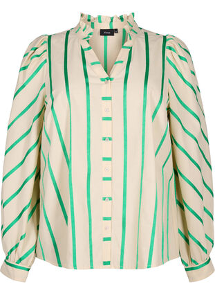Puuvillainen paitapusero raidallisella kuosilla ja röyhelökauluksella