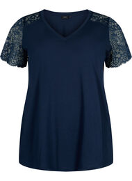 Puuvillainen t-paita lyhyillä pitsihihoilla