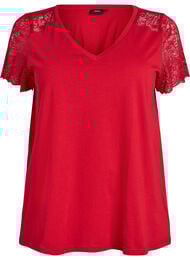 Puuvillainen T-paita pitsisillä lyhyillä hihoilla