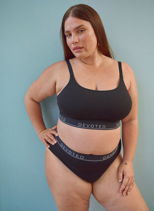 Pehmeät kaarituettomat rintaliivit pyöreällä pääntiellä ja säädettävillä olkaimilla. Ne on valmistettu joustavasta puuvillamateriaalista. Tyköistuva malli takaa maksimaalisen mukavuuden. Alaosassa on joutoreunus tekstiyksityiskohdalla.