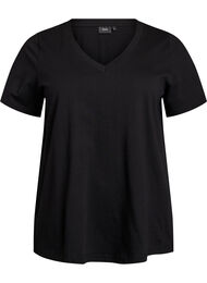 Puuvillasta valmistettu T-paita V-pääntiellä.