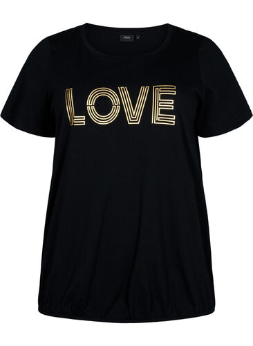 Lyhythihainen t-paita pehmeästä puuvillasekoitteesta, jossa on 50 % luomupuuvillaa ja metallipainatus rinnassa. T-paidassa on väljä istuvuus ja joustava alareuna, joka luo kauniin palloefektin.