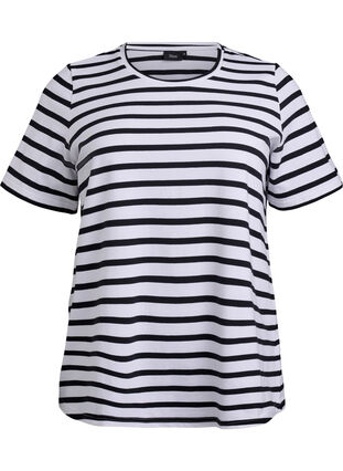 Klassinen raidallinen T-paita, jossa on lyhyet hihat ja pyöreä pääntie. T-paita on valmistettu miellyttävästä puuvillakankaasta, jossa on 95 % luomupuuvillaa.