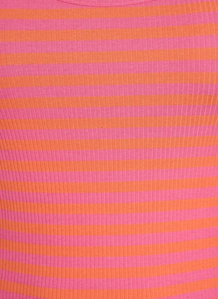 Tyköistuva toppi joustavasta puuvillakankaasta, jossa on ribbipinta. Topissa on leveät olkaimet, pyöreä pääntie ja ajaton raidallinen malli.