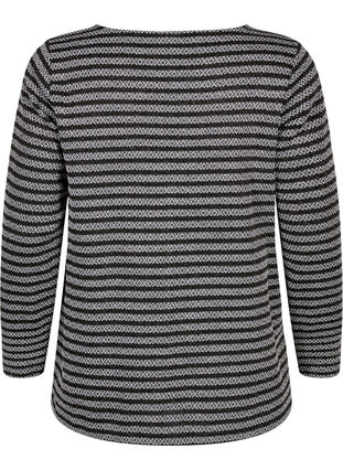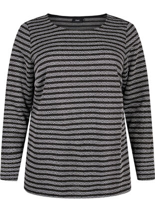 Pitkähihainen pusero pyöreällä pääntiellä. Puserossa on mukava istuvuus ja koristeellinen raidallinen kuvio.