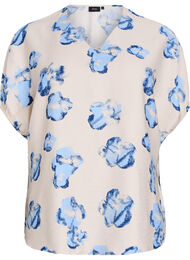 Kaunis pusero, jossa on upea kokoprintti, rento istuvuus, V-pääntie ja lyhyet hihat joustavilla hihansuilla, jotka luovat hieman rypytetyn efektin. Tämä pusero sisältää 92% LENZING™ ECOVERO™ Viscose -kuituja, jotka tukevat luonnollista pehmeyttä ja laskeutuvuutta.