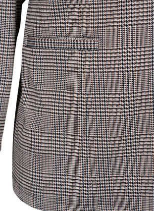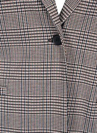 Bleiseri trendikkäällä ruutukuosilla. Siinä on yksi nappi edessä ja pitkät hihat.