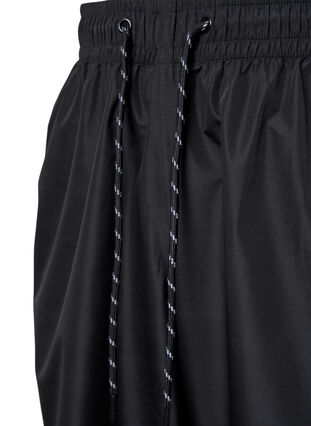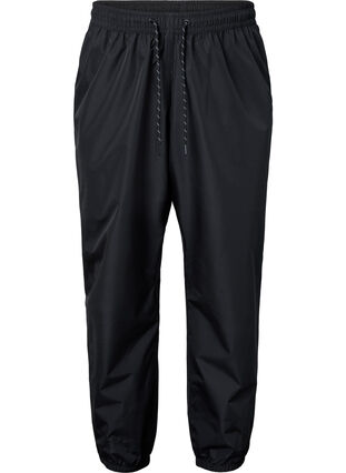 Rennon istuvat sadehousut hengittävästä, 100% kierrätetystä polyesteristä, jossa on teipatut saumat, jotka estävät vettä läpäisemästä. Housuissa on joustava vyötärö säädettävällä kiristysnauhalla.