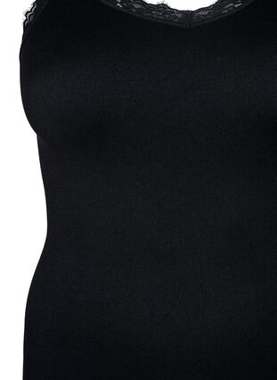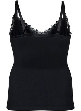 Feminiininen saumaton toppi joustavasta materiaalista ilman häiritseviä saumoja. Topissa on ohuet, säädettävät olkaimet ja kauniit pitsireunat edessä ja takana.