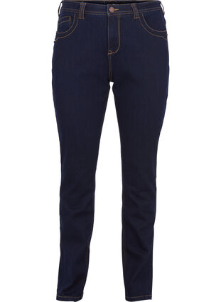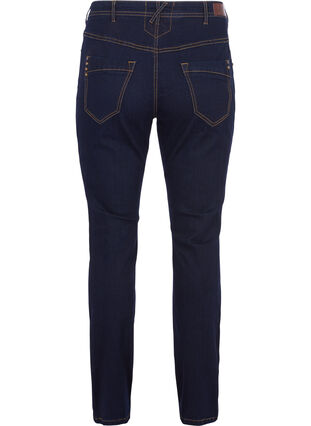Klassiset farkut super mukavasta puuvillakankaasta. Farkuissa on kapea malli, korkea vyötärö, taskut ja vyölenkit. Kontrastisaumat lisäävät farkkuihin upean yksityiskohdan.