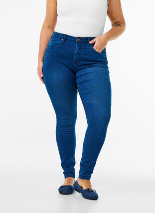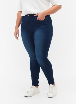 Super slim fit -farkut korkealla vyötäröllä. Niissä on yksinkertainen ja klassinen design. Farkut on valmistettu joustavasta puuvillasekoitteesta, mikä varmistaa mukavan istuvuuden.