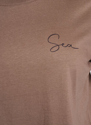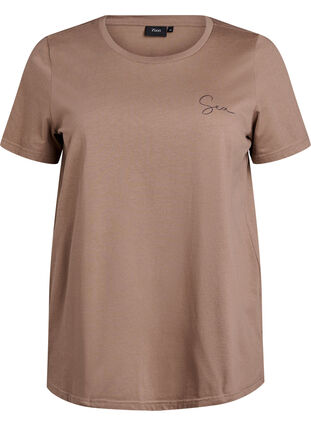 T-paita on valmistettu 100% puuvillasta, ja siinä on koristeellinen printti. T-paidassa on lyhyet hihat, pyöreä pääntie ja normaali istuvuus.