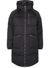 Lämmin toppatakki, jossa on ribatut hihansuut, jotka estävät tuulen pääsyn sisään. Takissa on huppu säädettävillä nyöreillä ja korkea kaulus, joka tuo lisälämpöä ja suojaa kaulan ympärille. Takki sulkeutuu kaksisuuntaisella vetoketjulla edestä, ja siinä on vetoketjulliset sivut ja taskut.