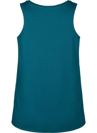 Yksivärinen treenitoppi, jossa on pyöreä pääntie ja pieni logo rinnassa. Toppi on valmistettu joustavasta ja nopeasti kuivuvasta materiaalista, joten sitä on miellyttävää käyttää treenatessa.