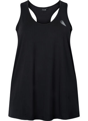 Yksivärinen treenitoppi upealla painjanselällä. Topissa on pyöreä pääntie, väljä malli ja hyvä liikkumisvapaus.