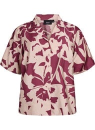 Lyhythihainen paitapusero, jossa on kokopainatus, kauluskäänteet ja V-pääntie. Puserossa on normaali istuvuus ja täyspitkä nappikiinnitys. Tämä paitapusero sisältää 80% LENZING™ ECOVERO™ -viskoosikuituja, jotka tukevat luonnollista pehmeyttä ja laskeutuvuutta.