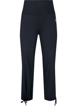 Treenihousut joustavasta ja nopeasti kuivuvasta materiaalista korkealla vyötäröllä ja kapealla joustavalla vyötärönauhalla. Housuissa on väljä istuvuus ja säädettävät kiristysnauhat alhaalla, mikä varmistaa hyvän istuvuuden.