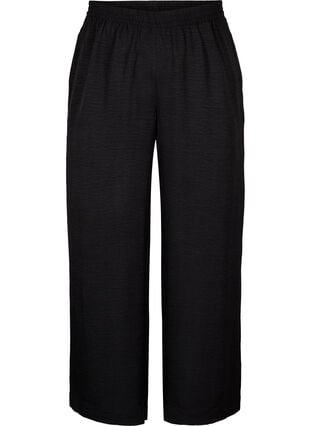 Väljät housut, joissa on joustava vyötärönauha ja taskut