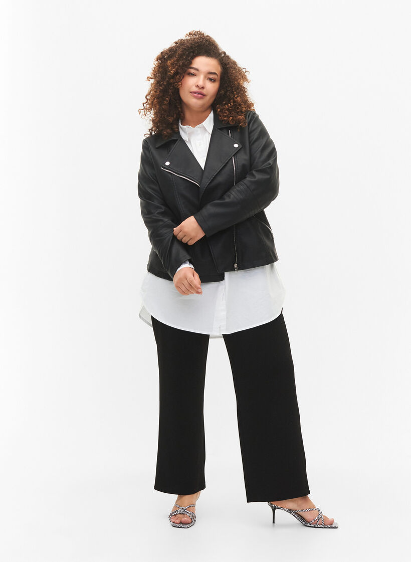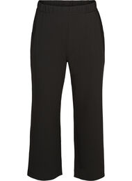 Yksinkertaiset väljästi-istuvat housut, joissa on sivutaskut ja joustoreunut vyötäröllä.