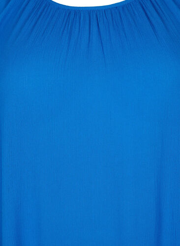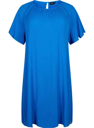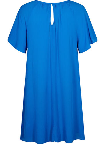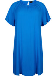 Yksinkertainen mekko, jossa on lyhyet hihat ja pyöreä pääntie nappikiinnityksellä niskassa. Mekossa on pieniä laskokset pääntiellä, mikä tuo mukavaa laskeutuvuutta väljästi istuvaan malliin. Tämä mekko sisältää 100 % LENZING™ ECOVERO™ -viskoosikuitua, minkä ansiosta mekko on luonnollisen pehmeä ja kauniisti laskeutuva.