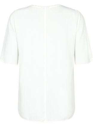 Naisellinen pusero pehmeää viskoosia, josta 50 % on Lenzing ™ ECOVERO™ viskoosia. Puserossa on 1/2 hihat, joissa on leveyttä, ja edessä on kaunis kirjailtu yksityiskohta, jossa on napit.