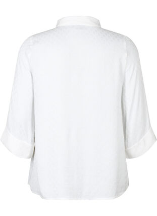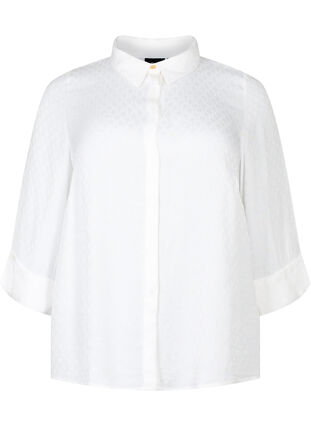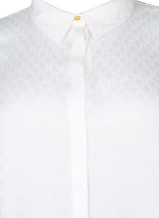 Kaunis paita 100 % viskoosia, jossa on sävy sävyyn -kuvio. Paidassa on 3/4-hihat, klassinen paitakaulus ja piilotettu nappikiinnitys edessä.